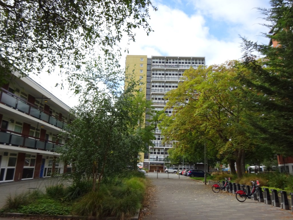 This scheme adjacent to the older Ethelburga Estate was built on the site of the old Ethelburga Primary School at a time when many State Schools gave-way to Private. This estate is composed of flats at a much higher density that are probably, not being constrained by regulation and as was the fashion of the time, of a much smaller and tighter individual floor-space. As can be seen gardens are quite tight to the road whilst the flats on the corner look to be tight and poky whilst having very little – if any – outdoor space. For all that, being ‘private’ the flats and houses, despite being clearly of a much lower standard, are probably much more sought after and more much more highly priced.