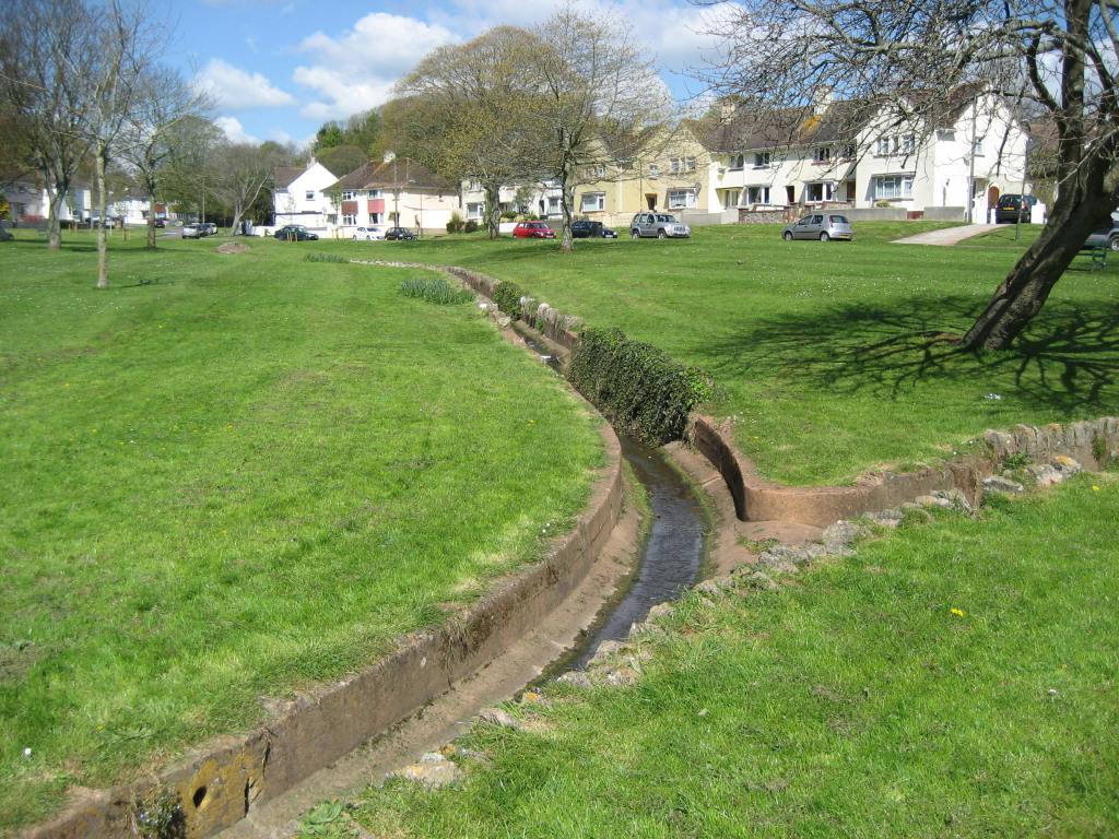 This Culvert at Combe Pafford, the Arts & Crafts Village in Torquay, should have been in appearance something like the traditional ‘Babbling Brook’ with natural banks, maybe with Water-Cress and Water Insects. However, and for whatever reason, it was constructed as a Concrete Culvert of very little, if any, aesthetic effect. It is thought to be most unlikely that any self-respecting Architect would have constructed anything quite as crass.